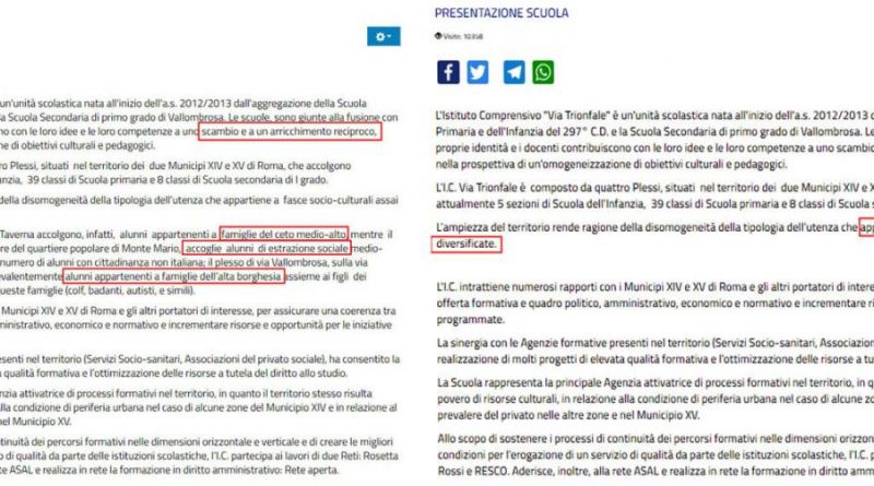 Sul sito dell’istituto comprensivo di Via Trionfale, i plessi sono stati suddivisi in base al reddito: